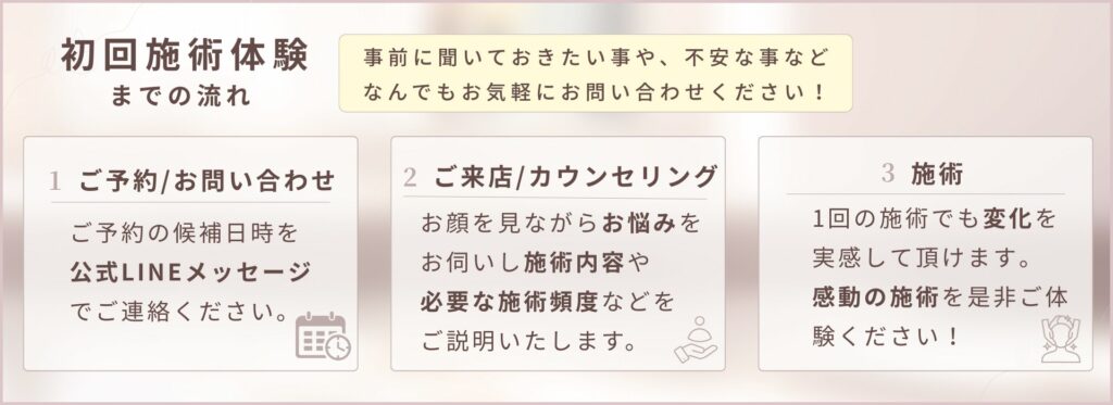 施術後、『最近なんだか若々しくなったね!』 そんな言葉をかけられる、鏡の中の自分に出会えます!